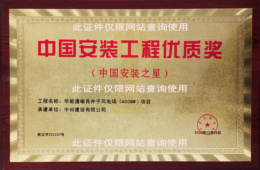 國優(yōu)證書:國家電投封丘陳橋驛風(fēng)電項目